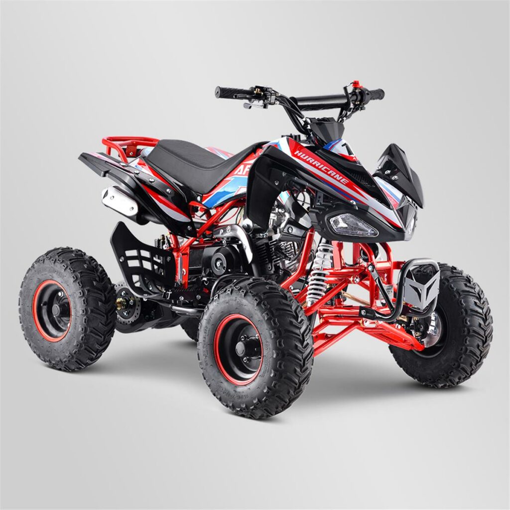 Ce quad 125cc Apollo Hurricane est équipé du tout nouveau cadre périmétrique dernière génération, ce qui lui confère un confort et une grande stabilité. Monté avec les pneus 7″, ce quad 125cc pourra passer n’importe quel obstacle, il est d’une excellente alternative pour offrir à votre enfant la possibilité de ressentir ses premières sensations sur un véhicule tout-terrain. Il est équipé d’un moteur 4 temps Lifan 125cc silencieux et économique, ainsi que d’une boite de vitesses automatique. Grâce à sa vitesse bridable et une stabilité à toute épreuve, ce quad enfant assure une vraie sécurité à votre enfant. Ce quad est équipé d’options de série digne d’un quad de grande marque japonaise… en bref, votre enfant va trouver une nouvelle passion!